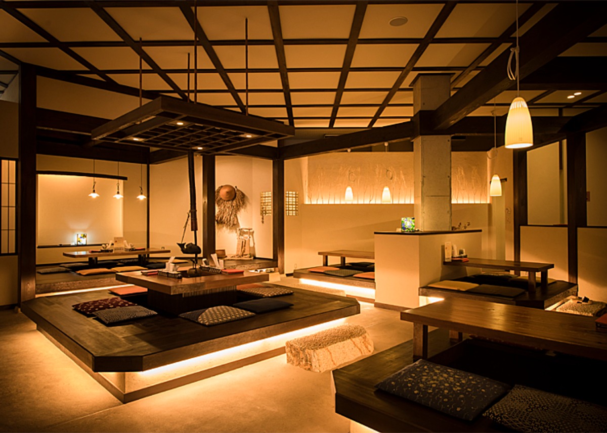 古民家の雰囲気を活かした和の空間。 掘りごたつでゆっくりくつろいで