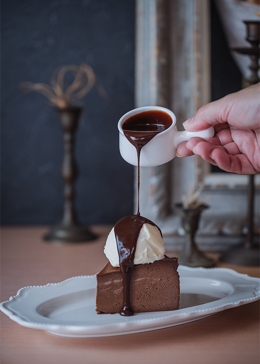 ▲生チョコバスクチーズ(715円) +アイスとチョコソースの トッピング(143円)