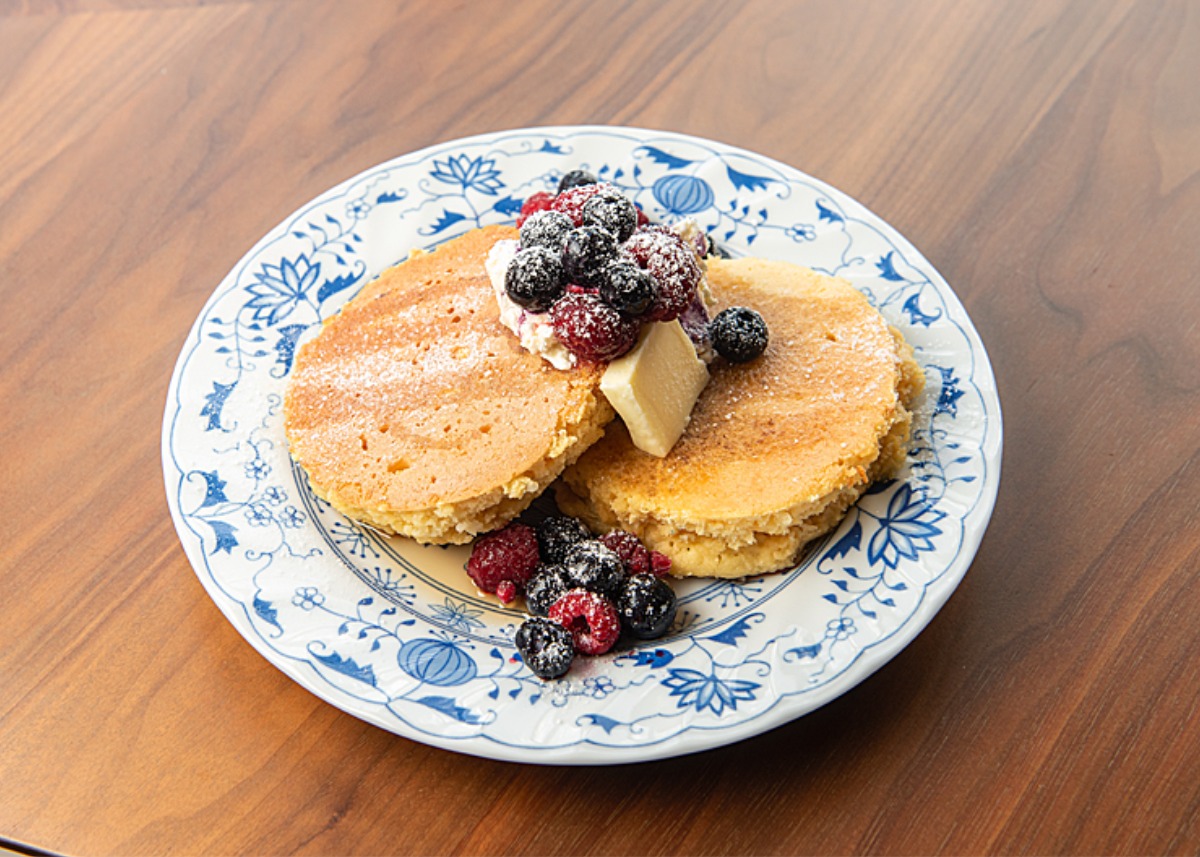 生のおからを練り込んだ、米粉で作ったパンケーキ。食物繊維が豊富で腸内環境を整え、むくみ解消にも◎