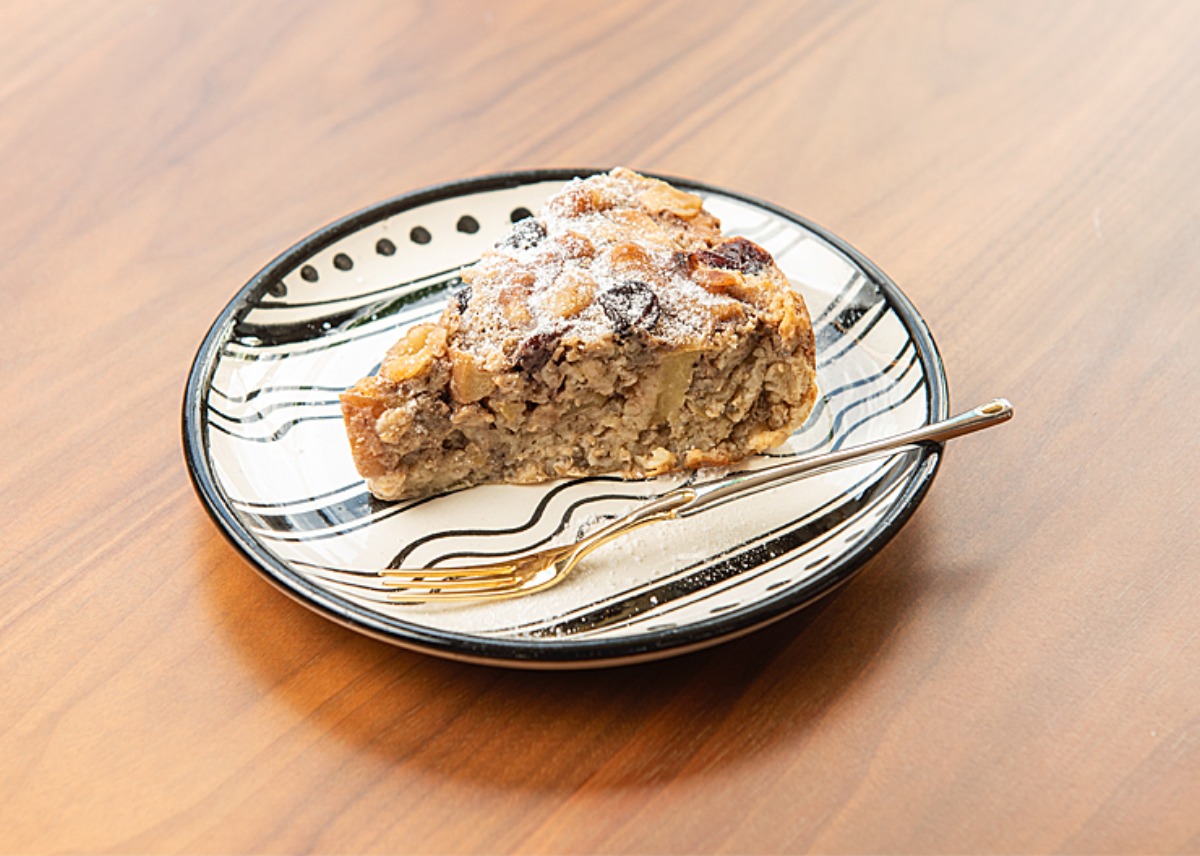 リンゴとバナナと蜂蜜の優しい甘みのケーキ。砂糖不使用で、血糖値、コレステロールの上昇も抑えてくれる