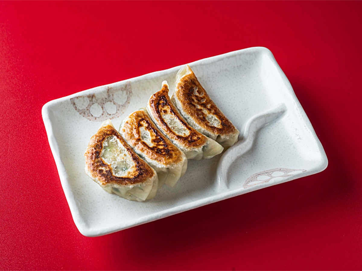 ラーメンと一緒に頼む客が絶えない、創業から変わらない餃子。新鮮な野菜と豚ミンチを使った手仕込みで、一つひとつ包まれる