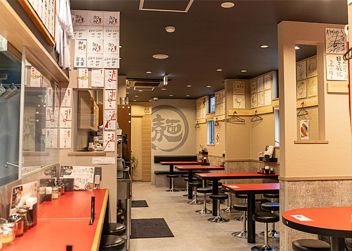 赤い暖簾をくぐると、ふわっと広がるダシの香りに食欲が刺激される。