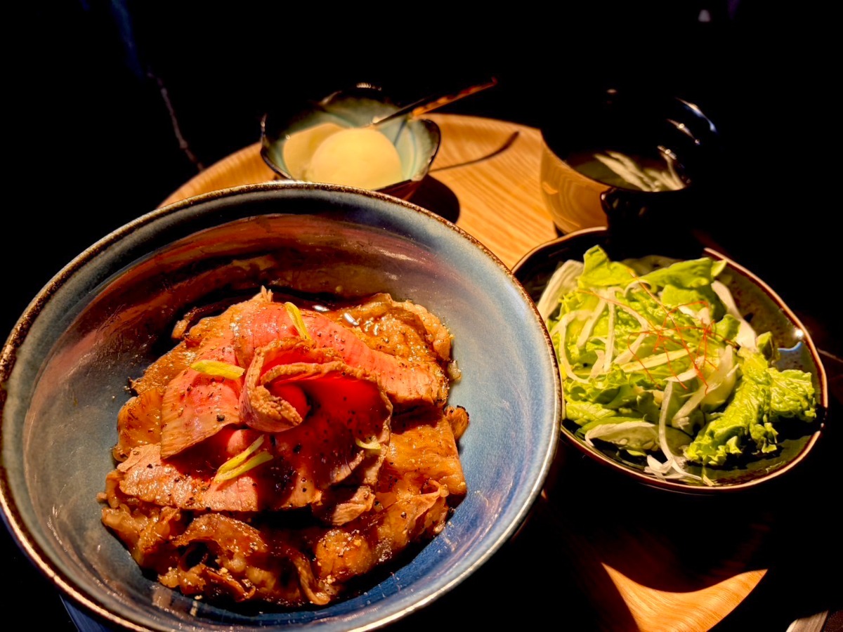 香ばしく炙り、こだわりの自家製タレをたっぷり絡めた和牛リブロースや、24時間かけて丁寧に仕上げたローストビーフが贅沢にトッピング。