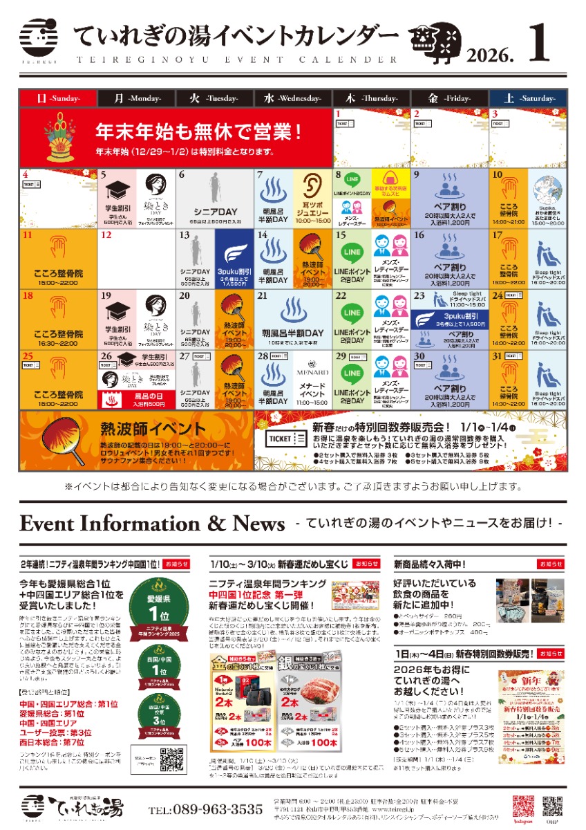 2026年の初風呂は是非ていれぎの湯へお越しくださいませ♨️