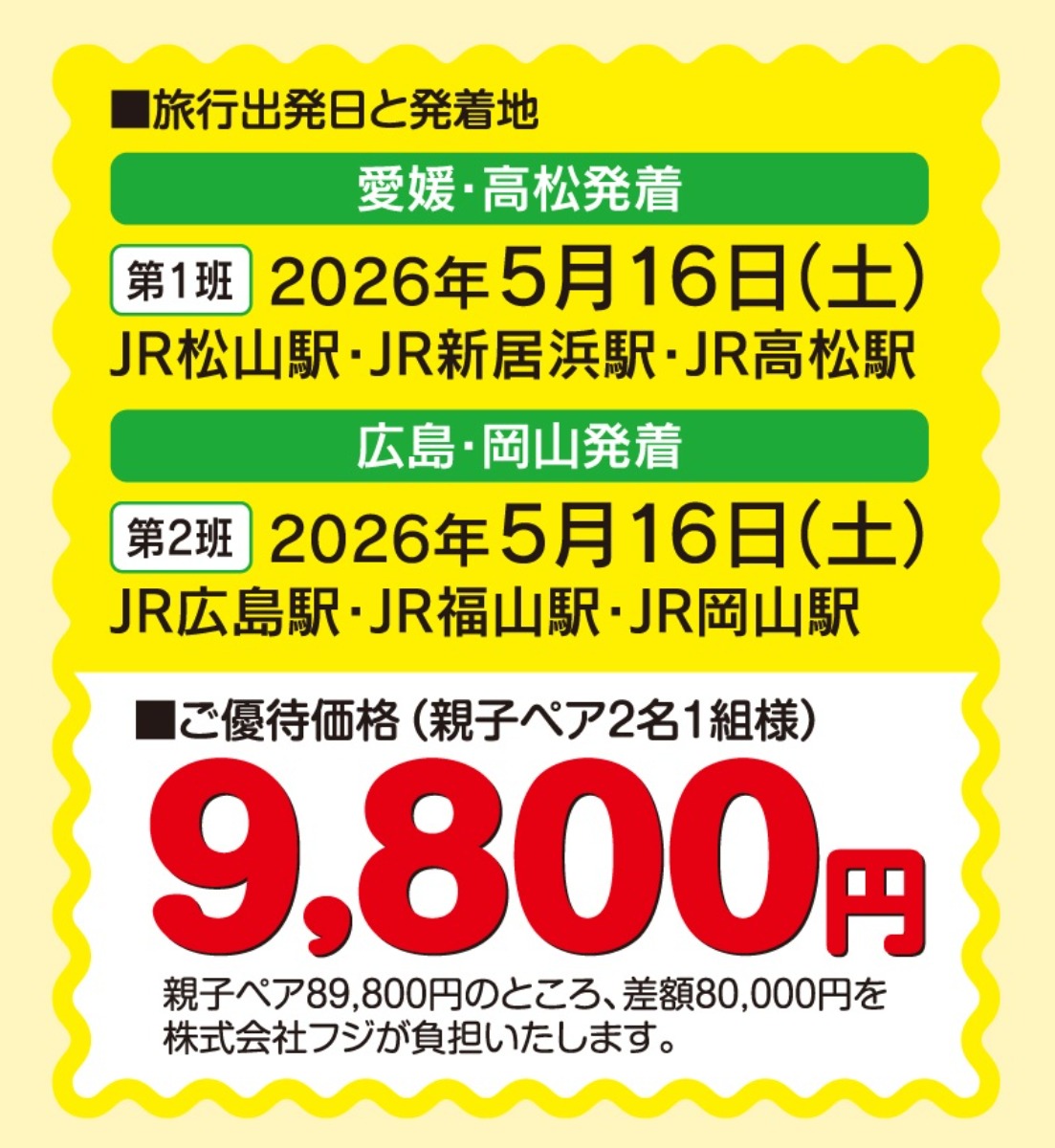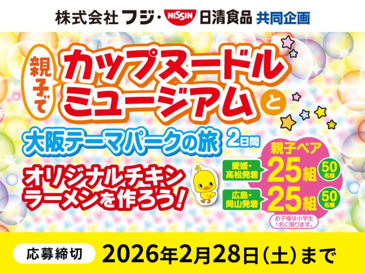 【フジ】1/5(月)-2/28(土) 『フジ・日清食品共同企画』親子でカップヌードルミュージアムと大阪テーマパークの旅 2日間