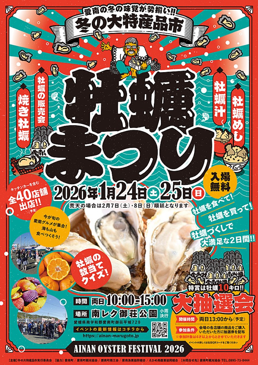 「あいなん冬の大特産品市 牡蠣まつり」の開催は2026年1月24日(土)・25日(日)10:00~15:00。