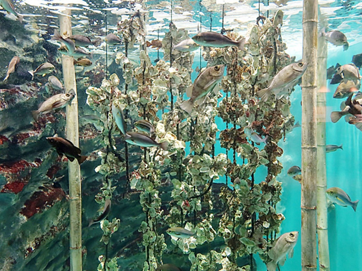 牡蠣の産卵・孵化シーズンは毎年夏頃で、この卵から生まれた牡蠣の赤ちゃん(幼生)が海水流の中でも安定して育つよう、ホタテの貝殻に付着させる「採苗」という作業が、養殖のスタートとなります。