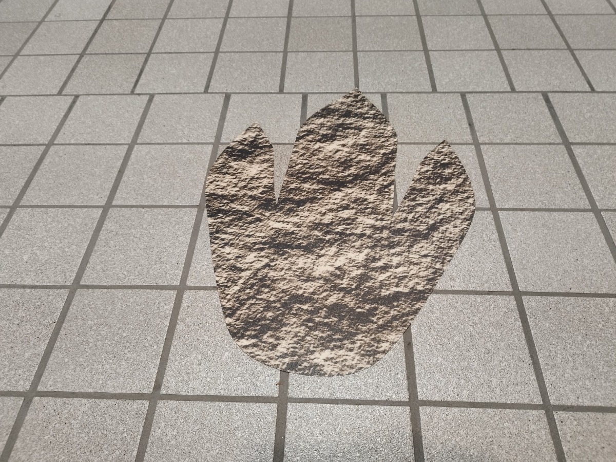会場前に大きな足跡が。