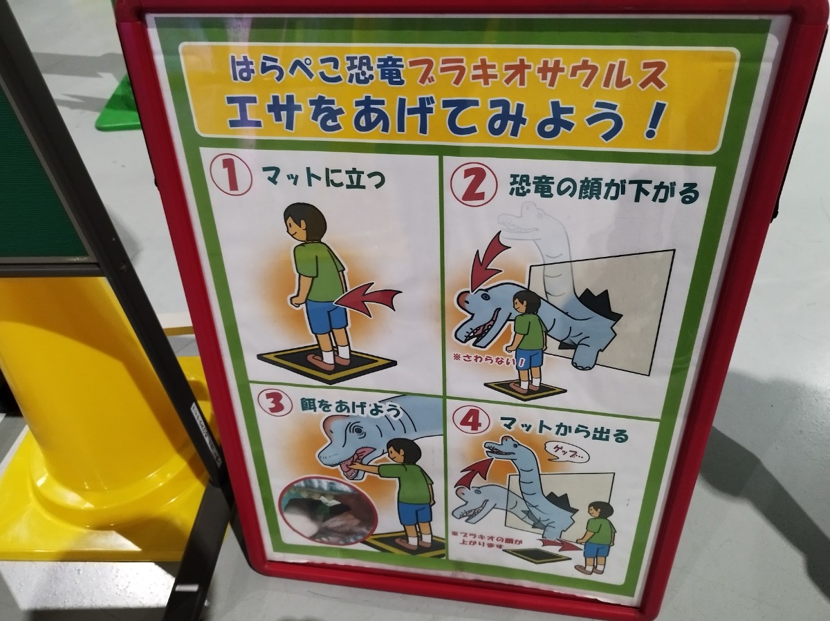 アイテムえひめ入口に貼られた恐竜ミュージアムのポスターに影響されたのか、早くも恐竜ムーブを披露するなどテンション高めの息子氏。