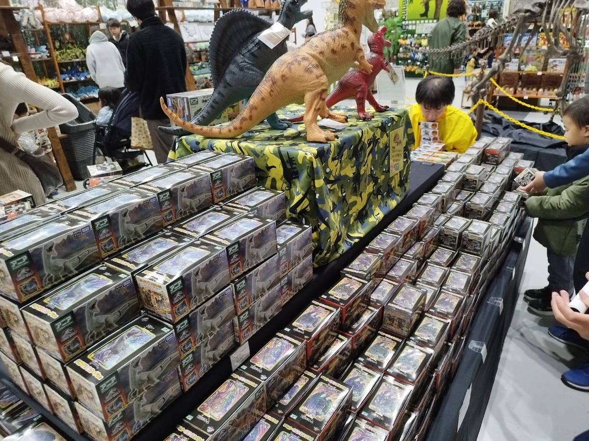 恐竜と触れ合えるブースを出たあと、様々な恐竜にまつわるアイテムが満載の物販ブースでも多くの人で賑わっていました。