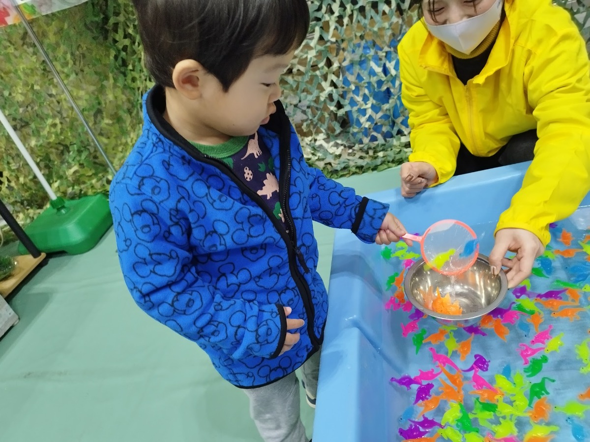 せっかくなので体験してみることにしました。ブイを片手に上手にひょいひょいと恐竜をすくう息子氏。