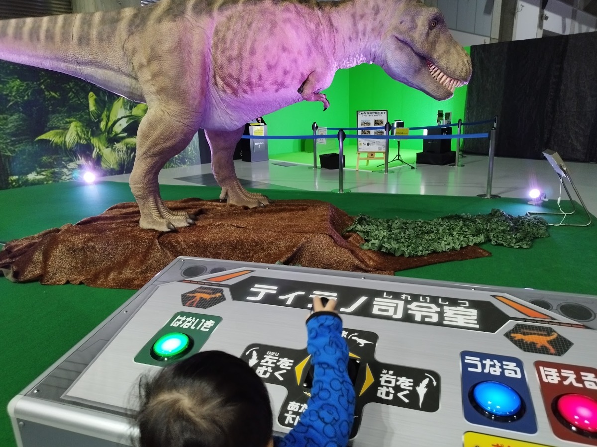 ティラノサウルスを自由に動かせるブースも。