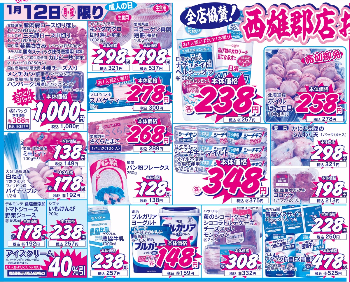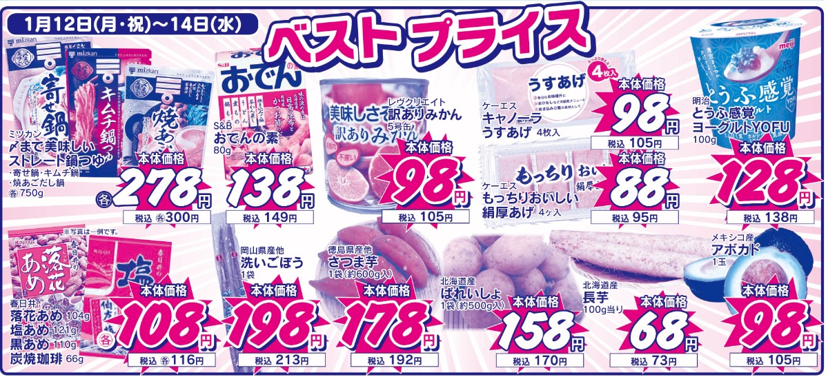 1月12日(月・祝)~1月14日(水)ベストプライス