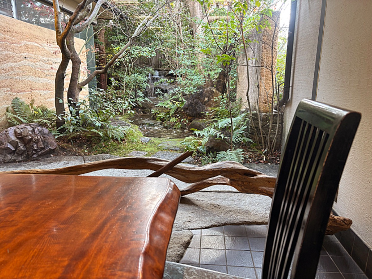 お店の1番奥にある日本庭園が見える席にしました。
