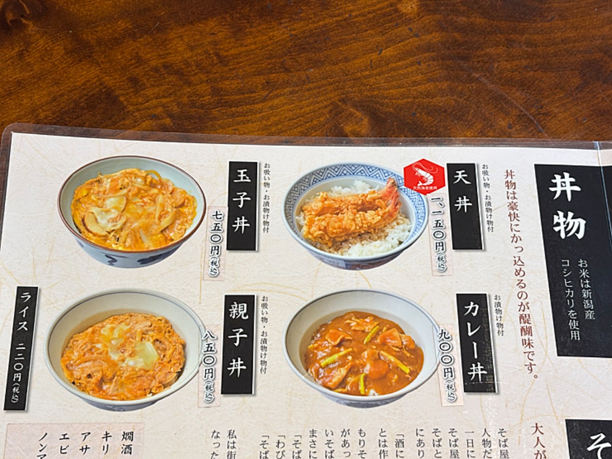 こちらはもりそば以外のそばメニューです。