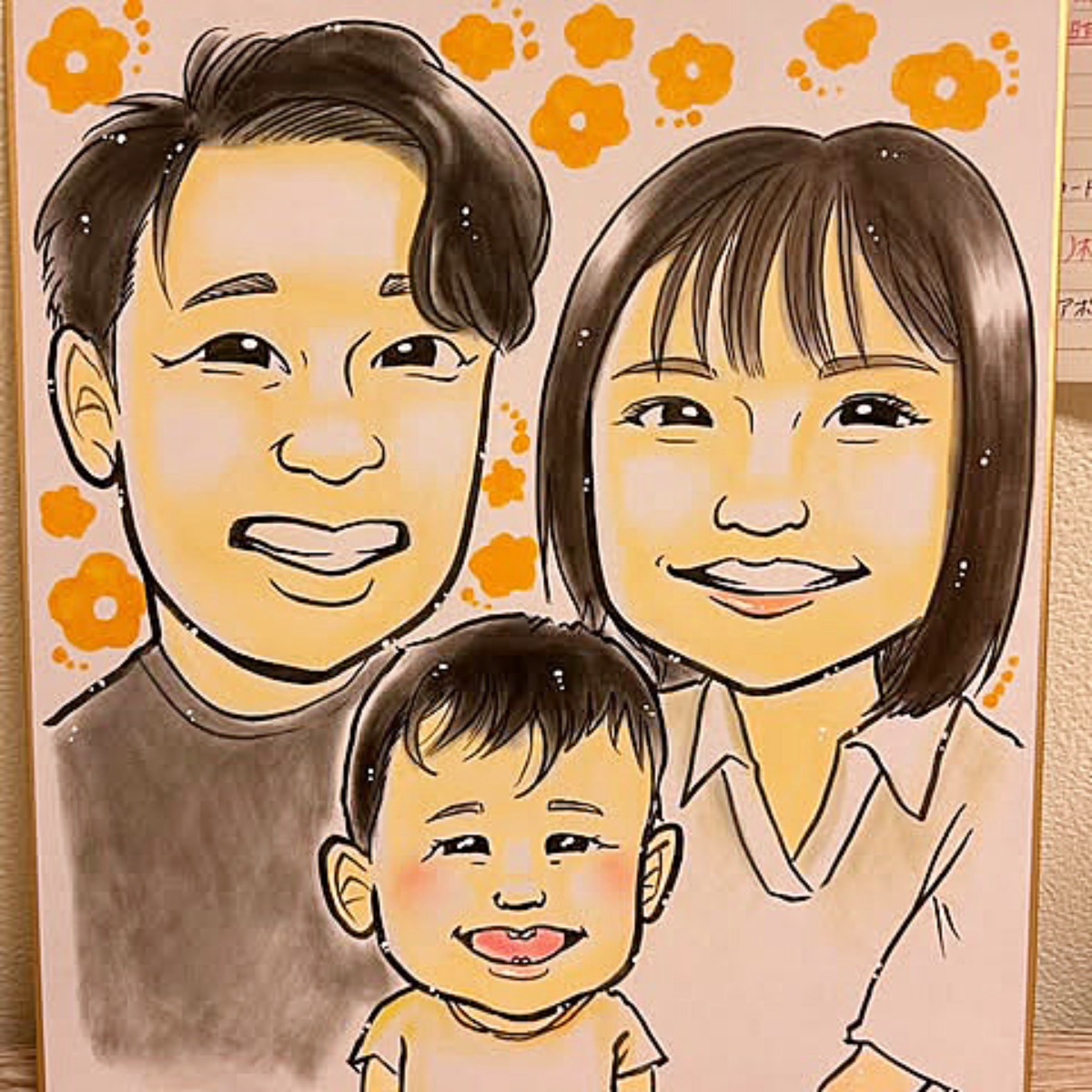似顔絵コーナーは、やわらかいタッチで描かれるため、記念撮影や贈り物にも好評。