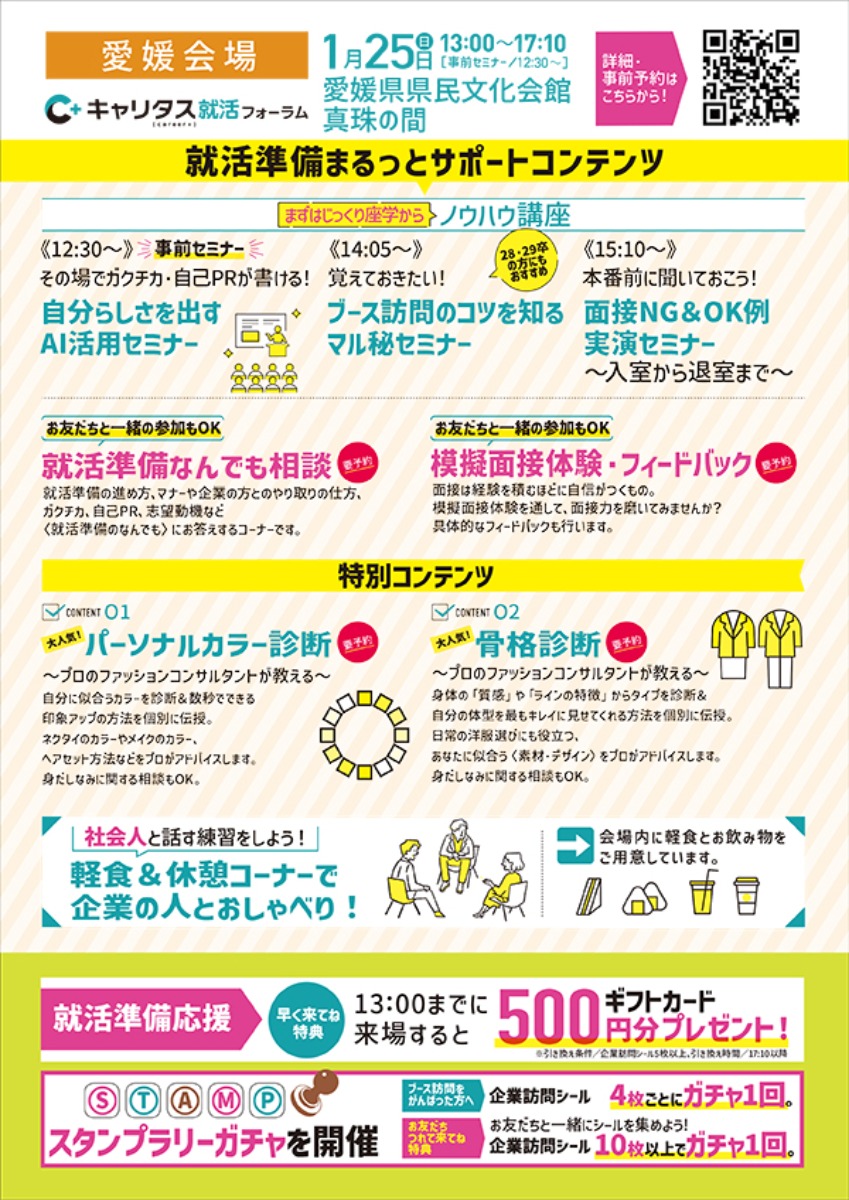 2026年1月25日(日)、「キャリタス就活フォーラム インターンシップ・キャリア」が、愛媛県県民文化会館 真珠の間にて開催されます。