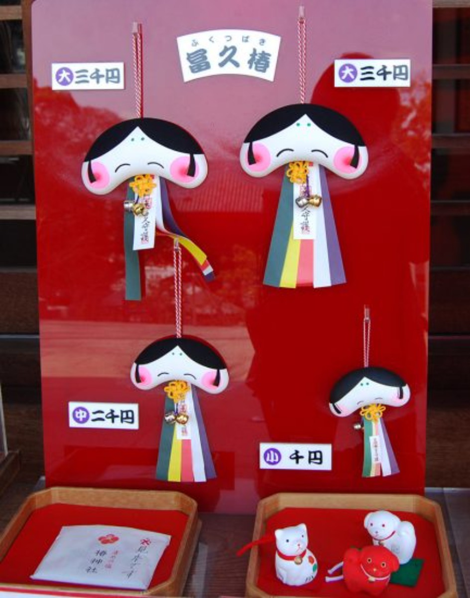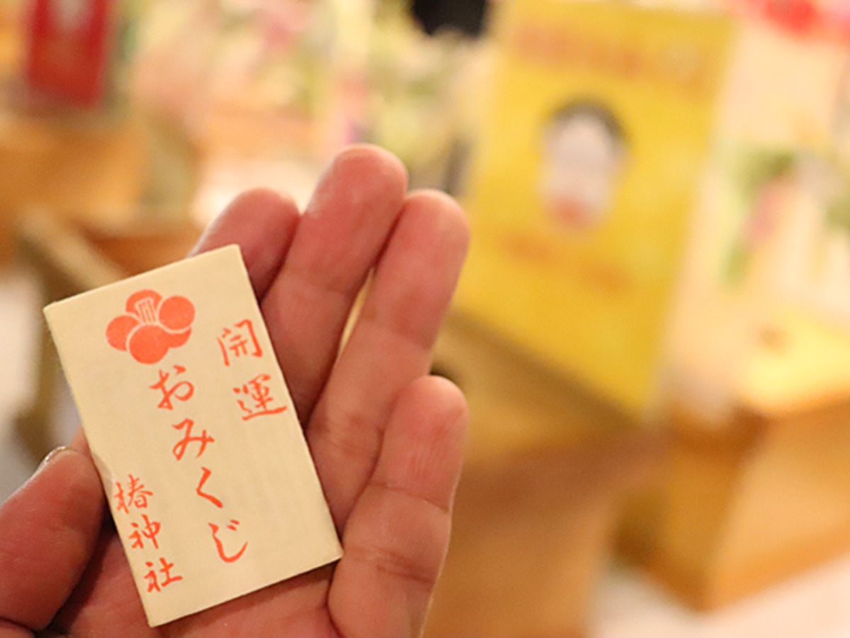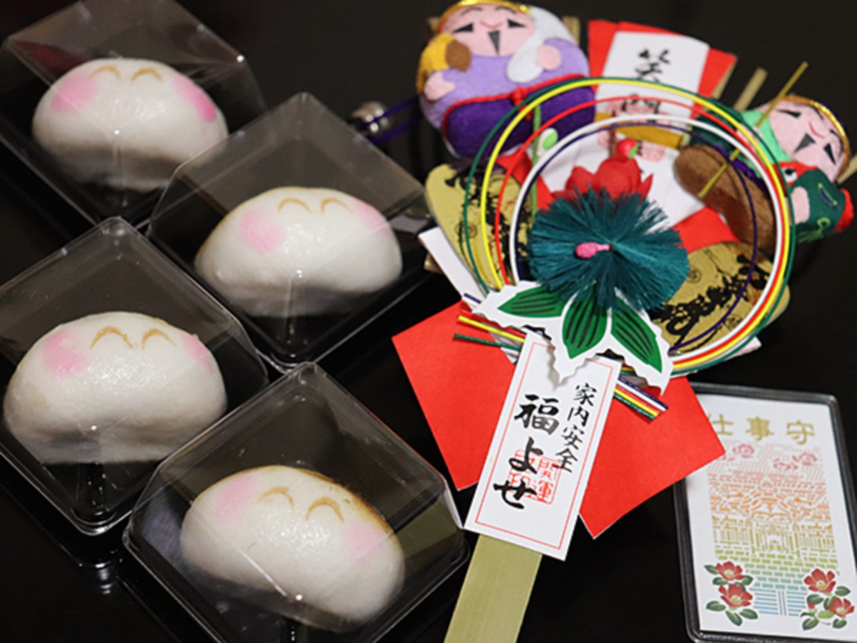 椿まつりには欠かせない縁起物に、椿さんならではのかわいいお守り・御朱印、名物のお菓子まで。