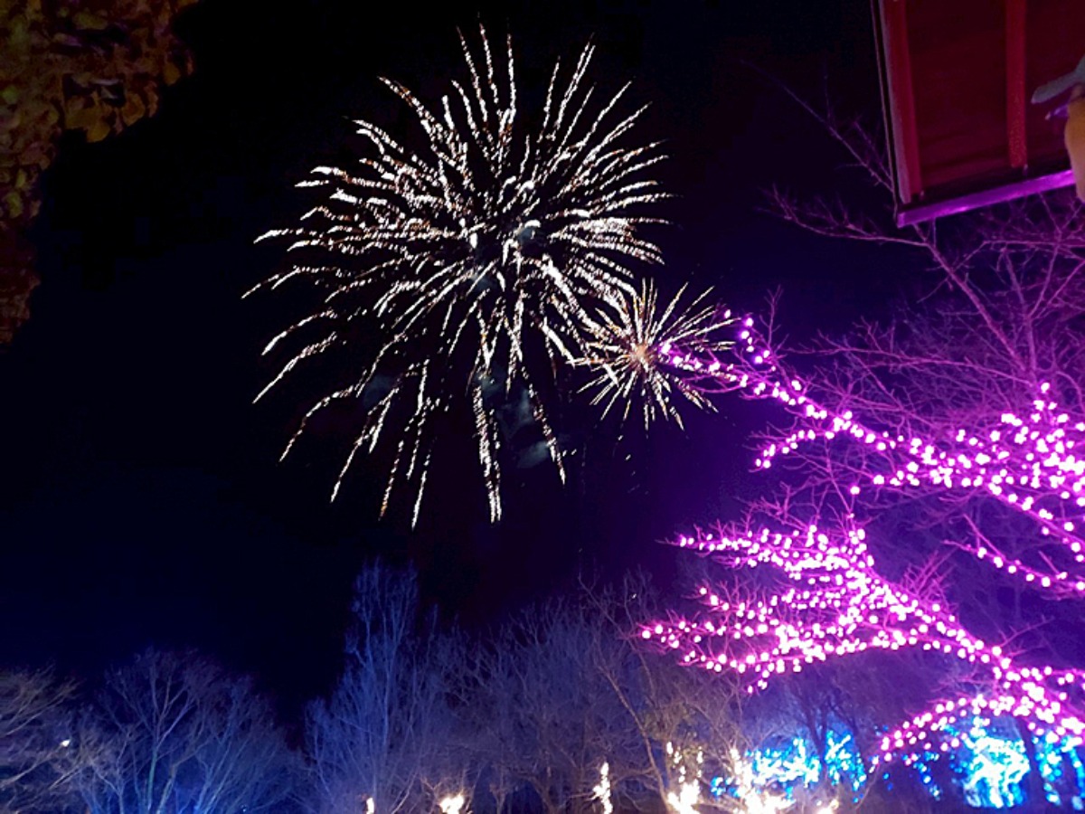 イルミネーションのきらめき、ログハウスの温かな光、そして夜空に咲いた花火に心が震えた冬のひととき。