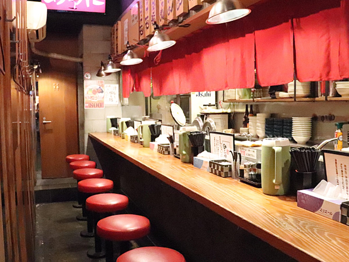 カウンター席が並ぶ店内。目の前の厨房から魚介ダシの良い香りが広がる