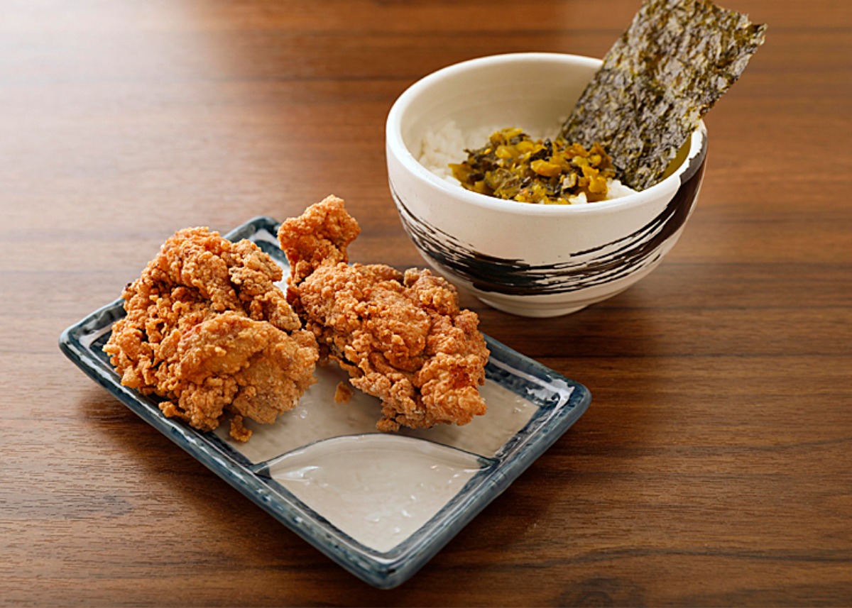 「高菜ごはんとからあ げセット」は中華そばと 組み合わせ可能