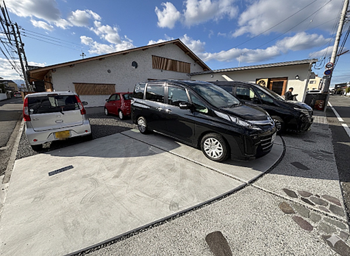 駐車場は、みんなで仲良く停めて6台ほど駐車可能です。