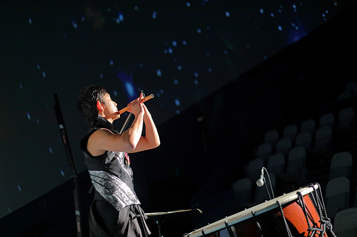 星空が映し出されるプラネタリウムの優美なドーム空間で、世界を旅した篠笛演奏家・阿部一成による心に沁みる音色をじっくりと体感できる貴重な機会です。