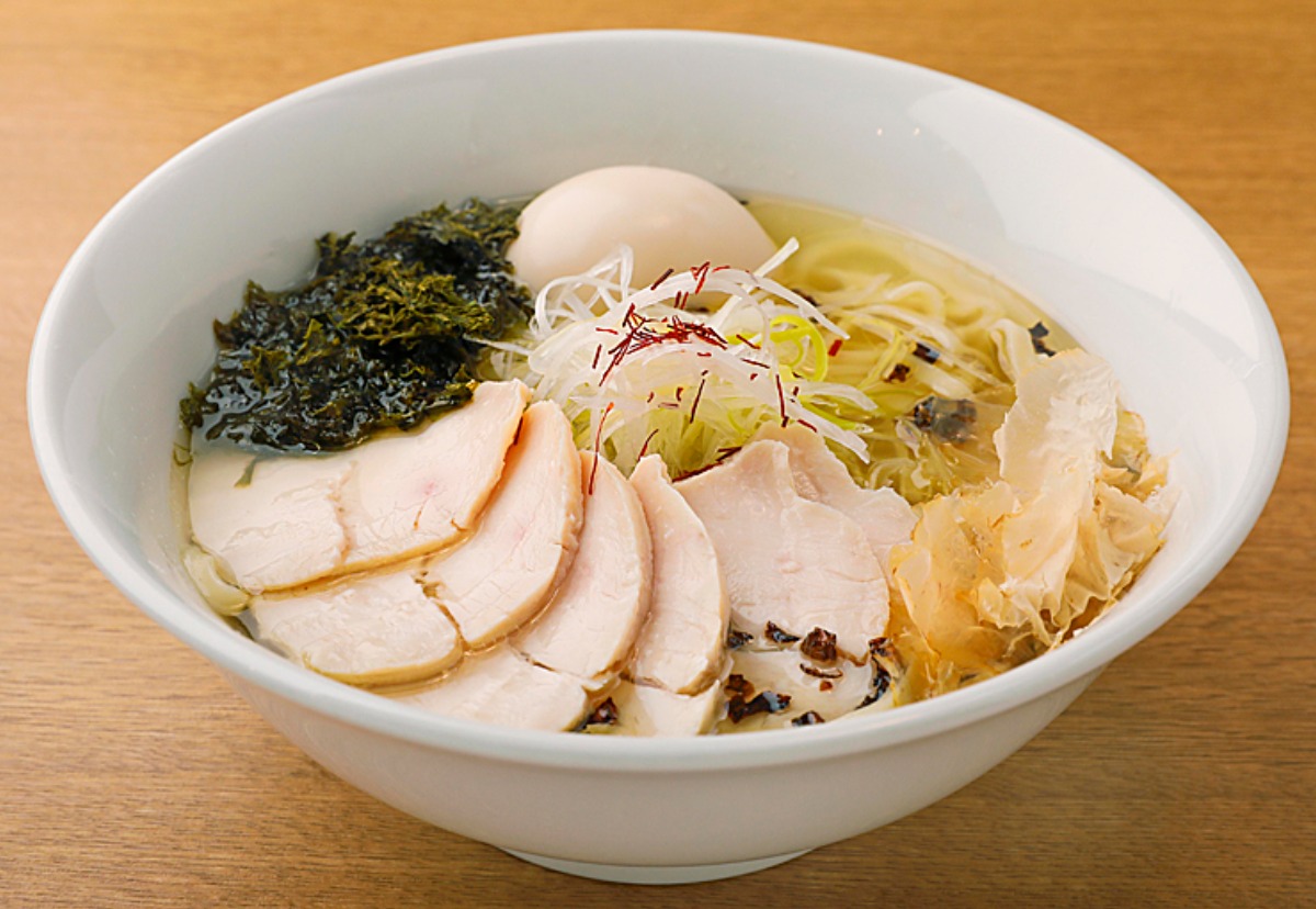 鶏ムネ肉から丁寧に取った澄んだ黄金色のスープは、雑味がなく淡麗で、繊細な塩味。