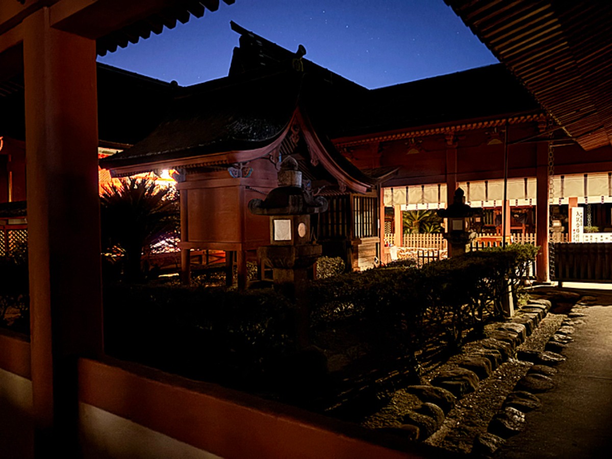 社殿の内部を回遊できます。ライトアップされている姿も美しい。