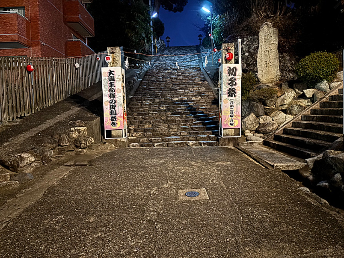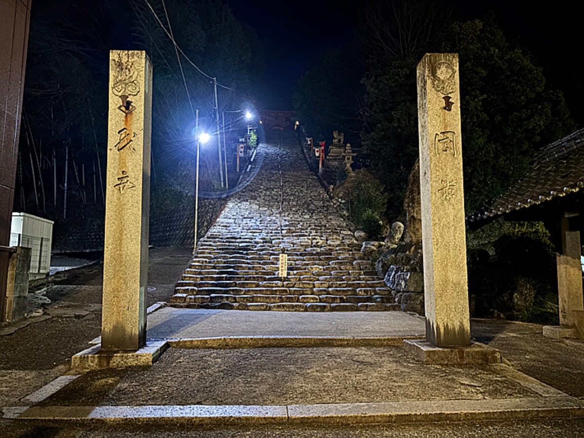 帰りに立ち寄ってみたのですがこの時間、湯神社は開門しておらず真っ暗でした。笑