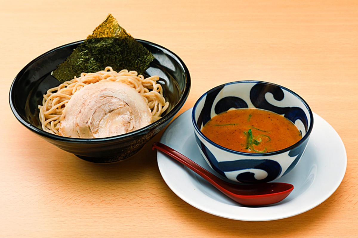 とろみのある魚介スープに 味噌を合わせた濃厚つけ 麺。分厚めに製麺した専用 麺がよく絡む
