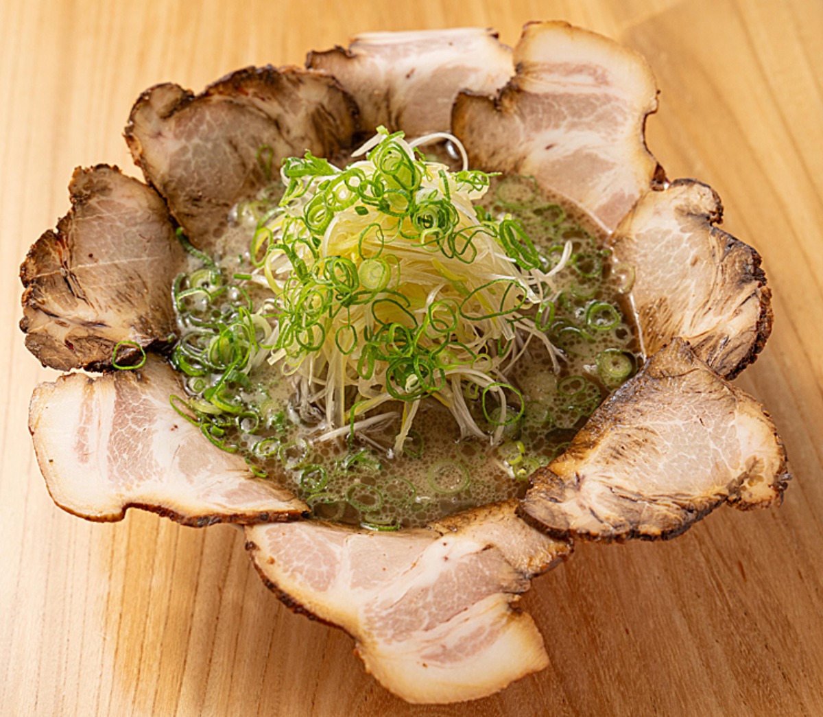 チャーシューは愛媛のブランド豚「ふれ愛 媛ポーク」を使用。丼の淵を覆い尽くし、存在感を放つ