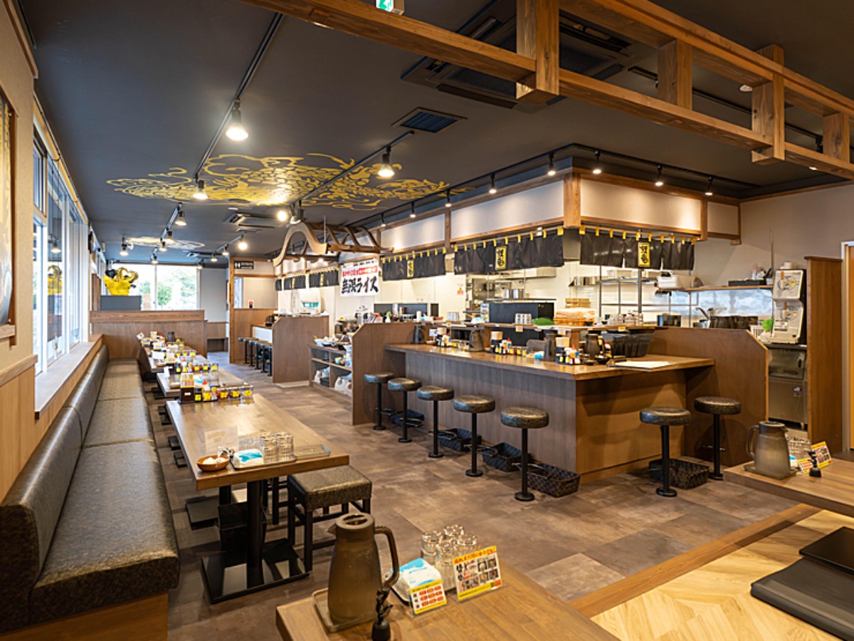 国道沿いに面し、明るく広々とした店内は、 一人でも入りやすい雰囲気