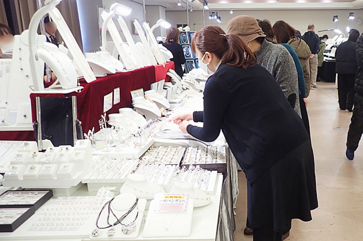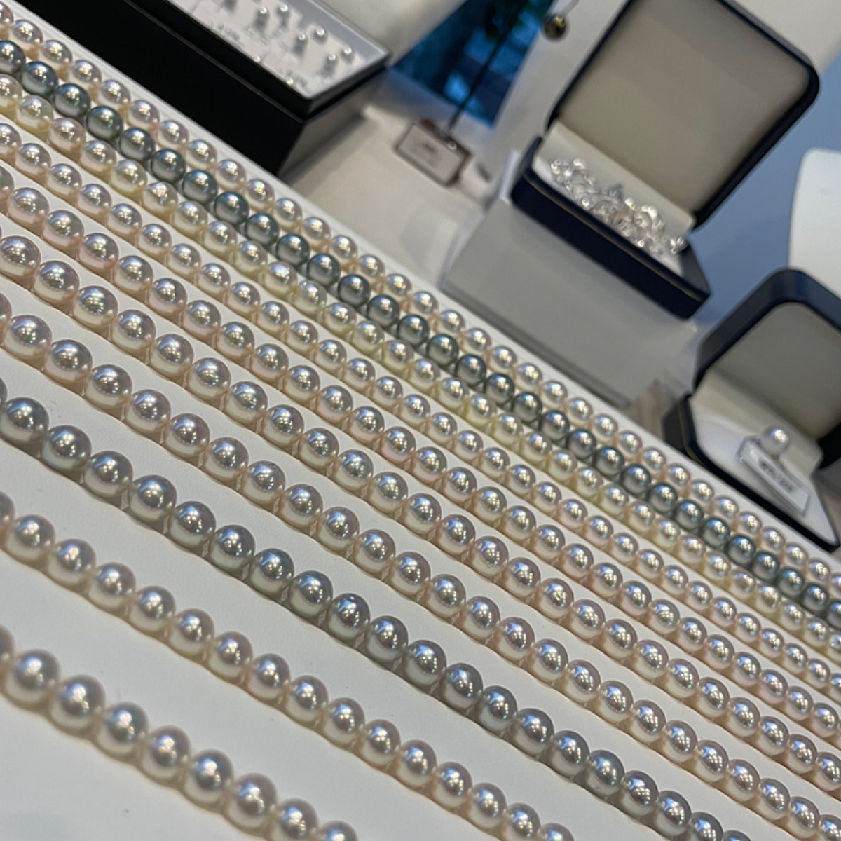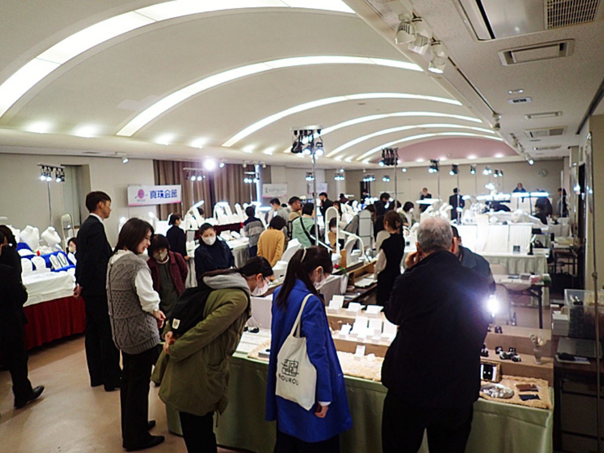 各店の販売員さんも立ち会うため、ガラスケース越しではなく直接手に取って商品を眺めたり、気になる事があれば真珠のプロであるスタッフさんに、都度質問できるのも大きなポイント。