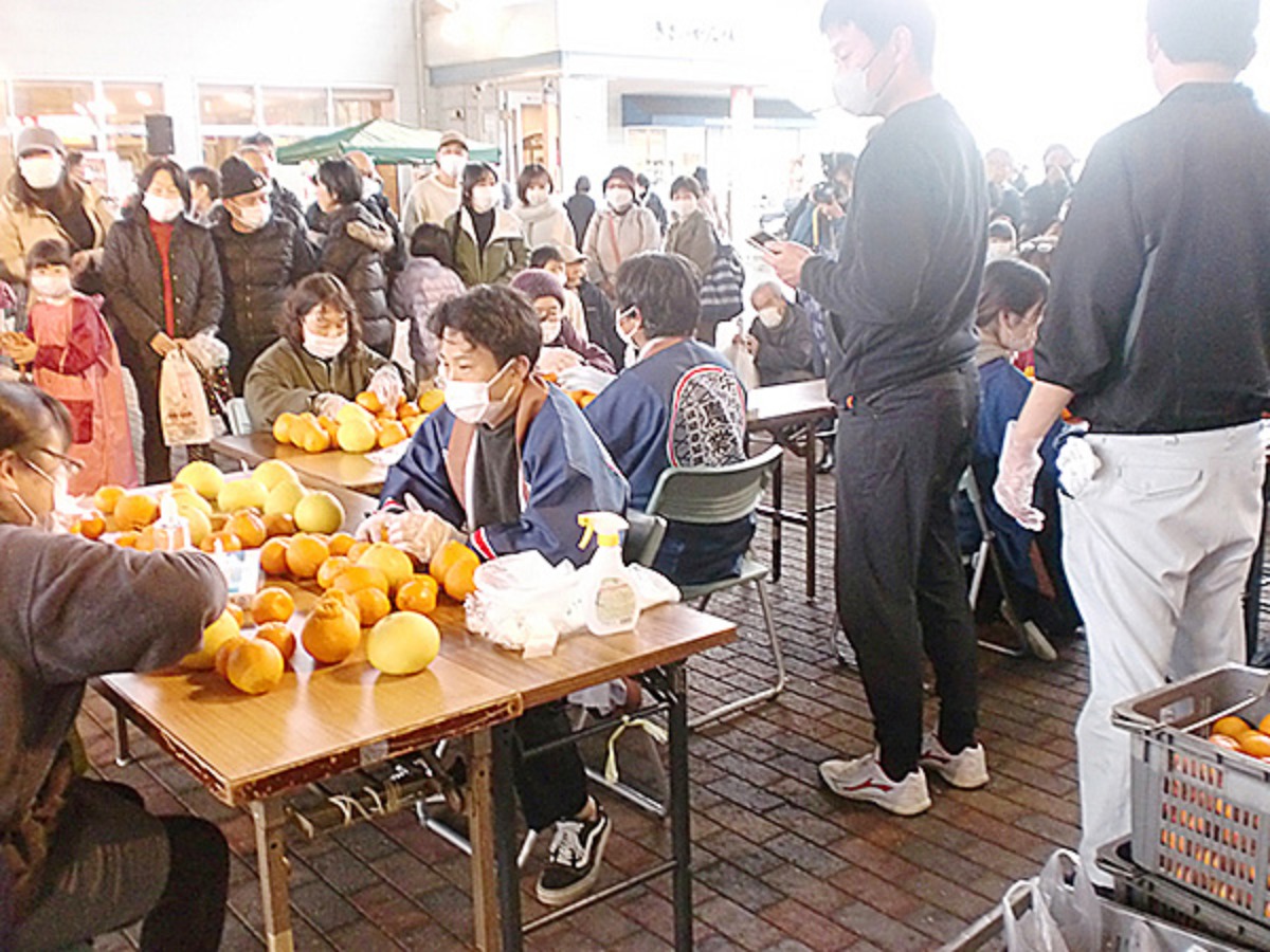 子どもから大人まで幅広く楽しめるのは、餅まきや柑橘生絞りジュースの試飲。
