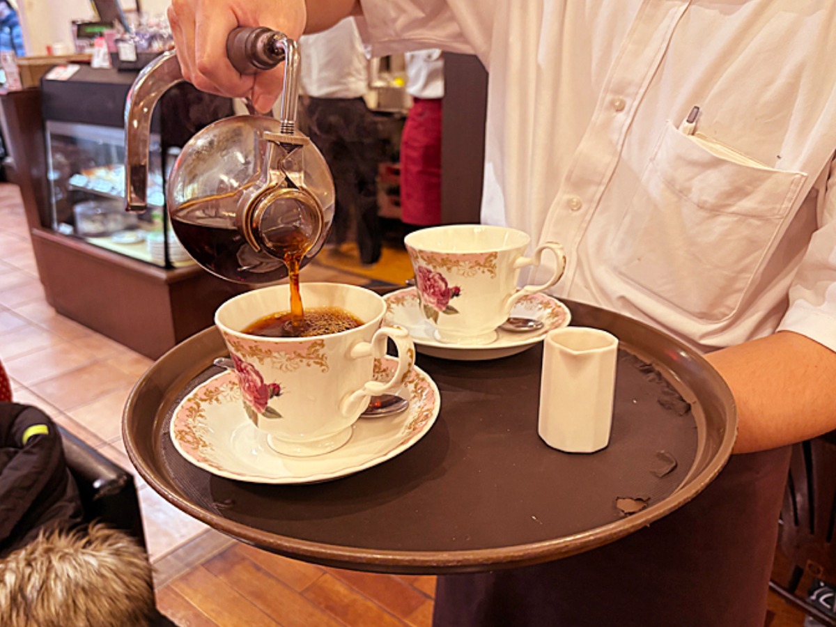 実は「フライングスコッツマン」は、ブレンドコーヒーを注文すると席の目の前で注いでくれるんです。