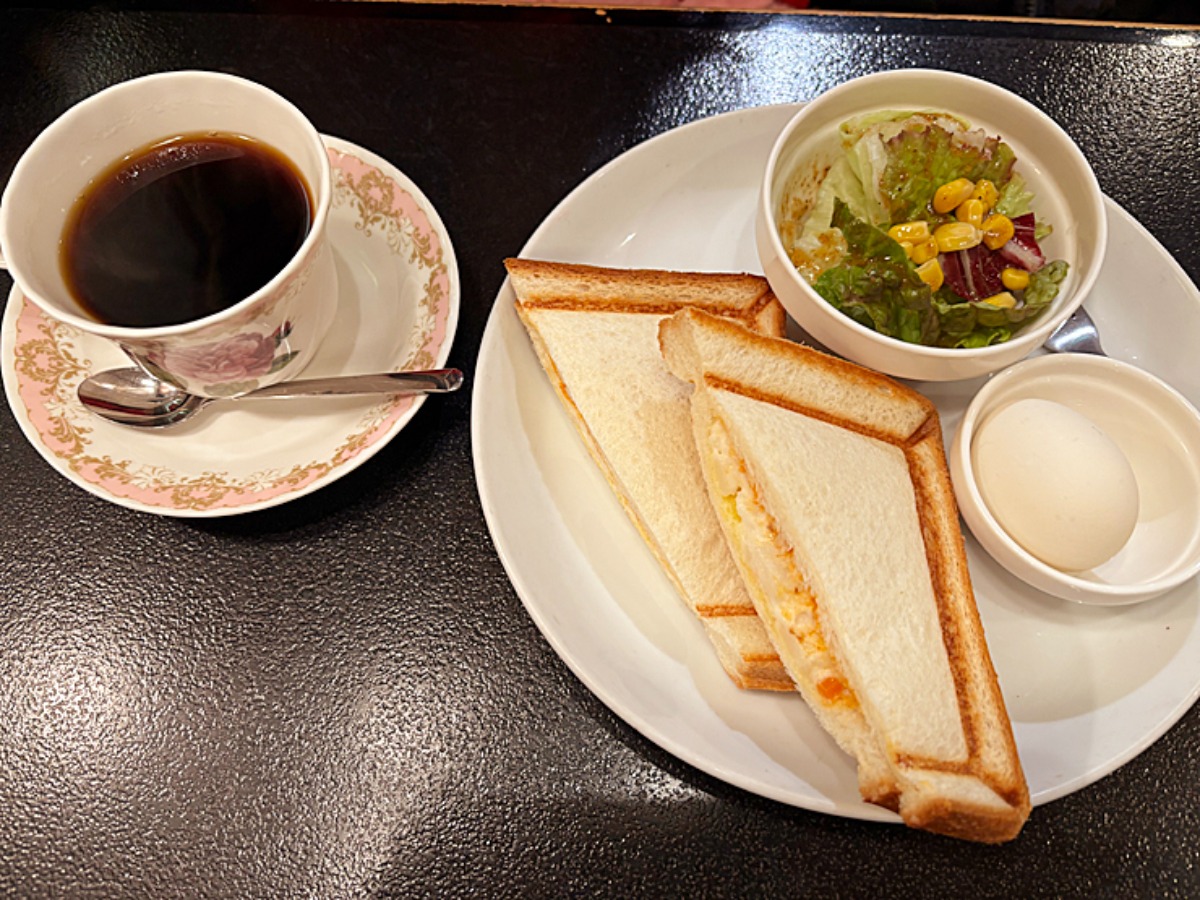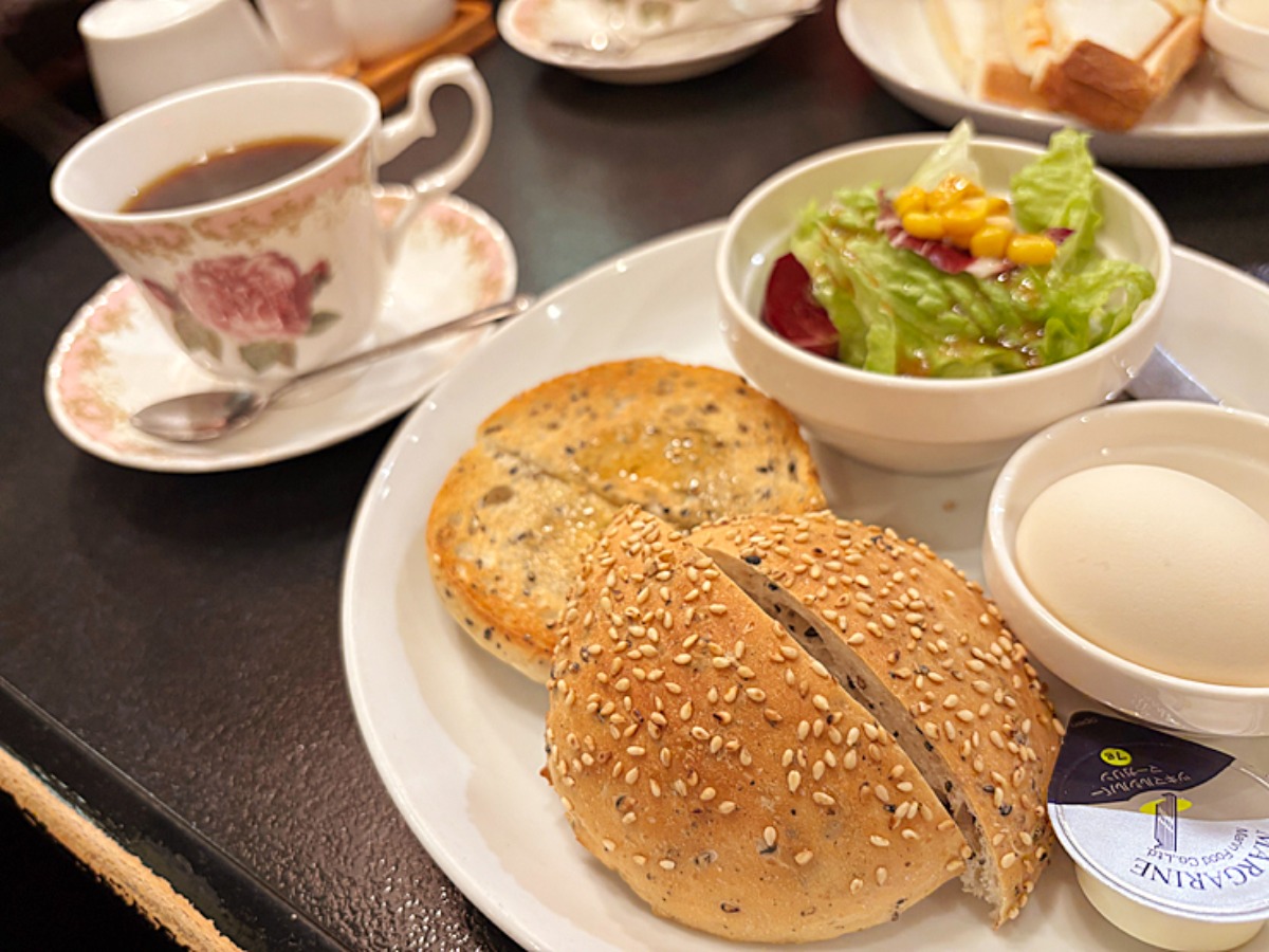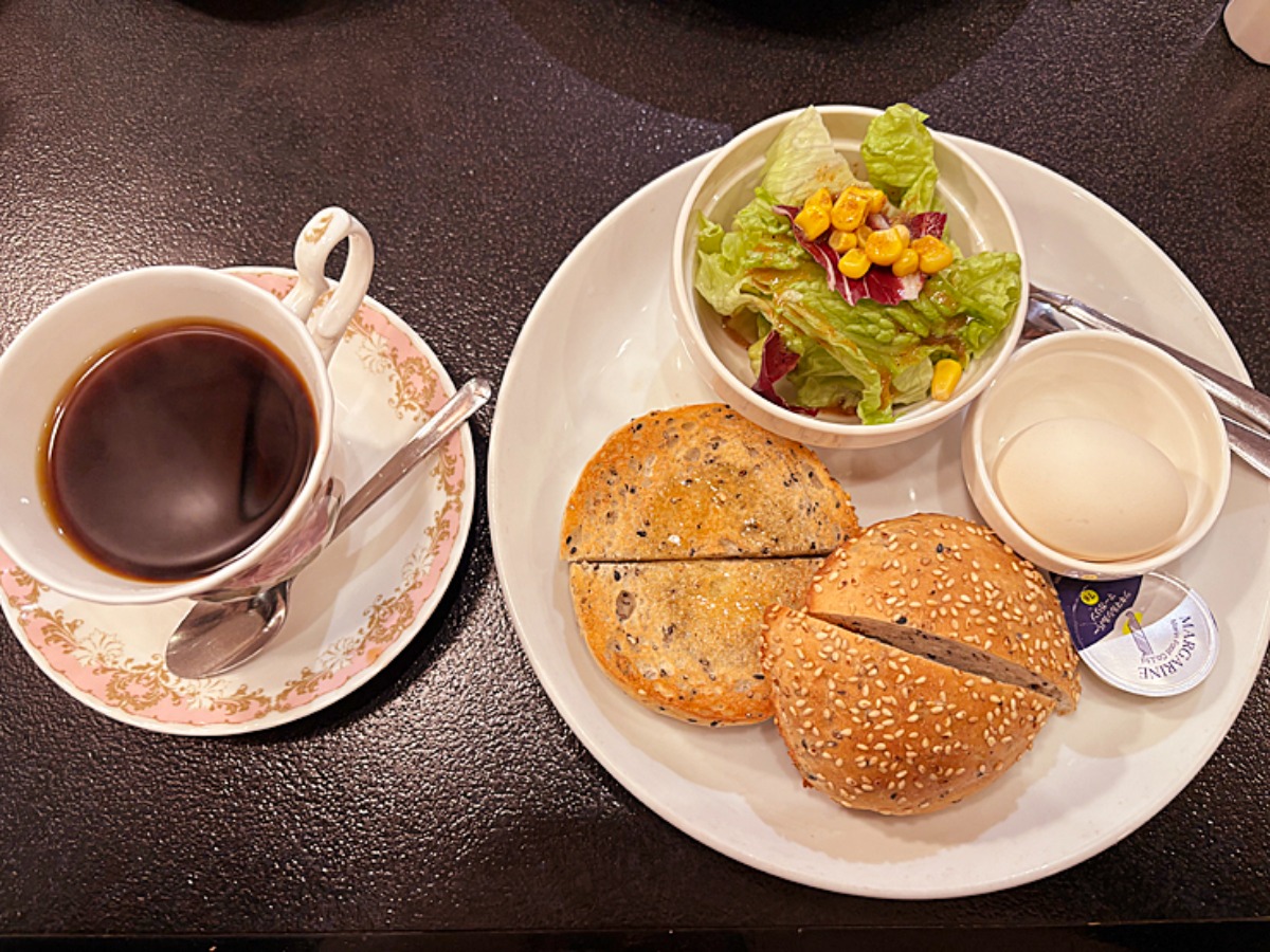 コーヒーもちびちびと味わって、モーニングのパンもしっかり味わい、ゆったりとした時間を過ごしましたよ。
