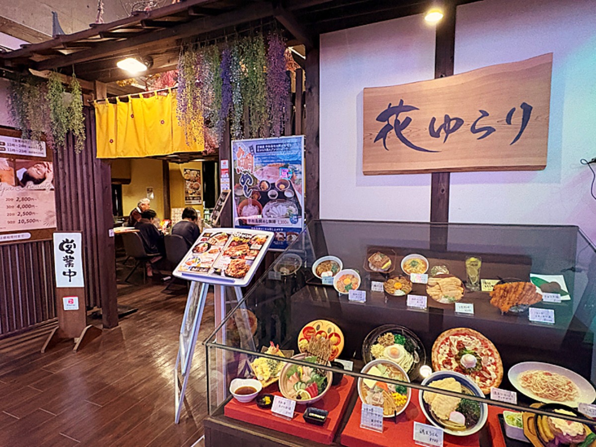 食事処の「花ゆらり」はランチにオススメの定食や丼モノだけでなく、お昼から居酒屋風メニューの注文もできるので、いろんなシーンで利用できるのが嬉しい♪