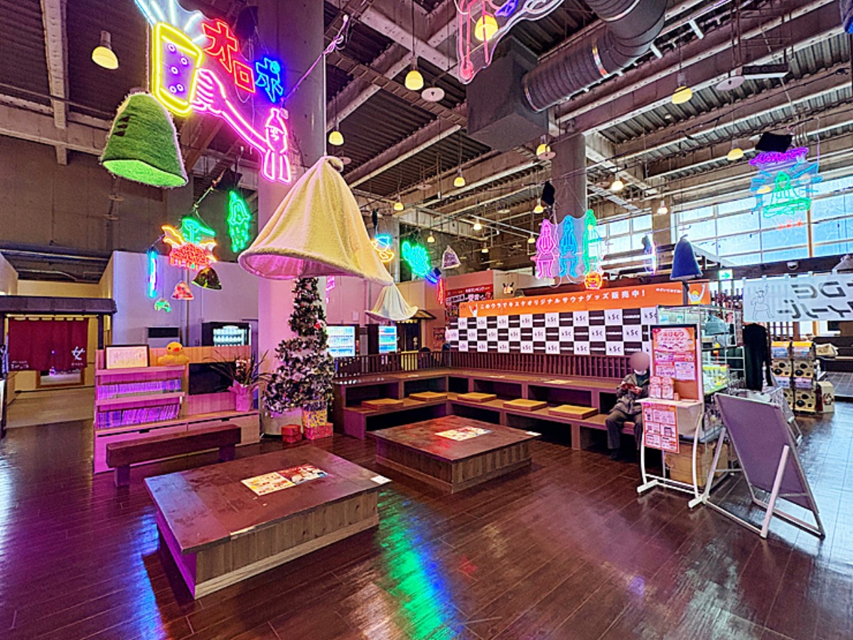 このネオン看板を目印に、館内着利用者のみ入れる「2Fフロア」へエレベーターで上がると…。