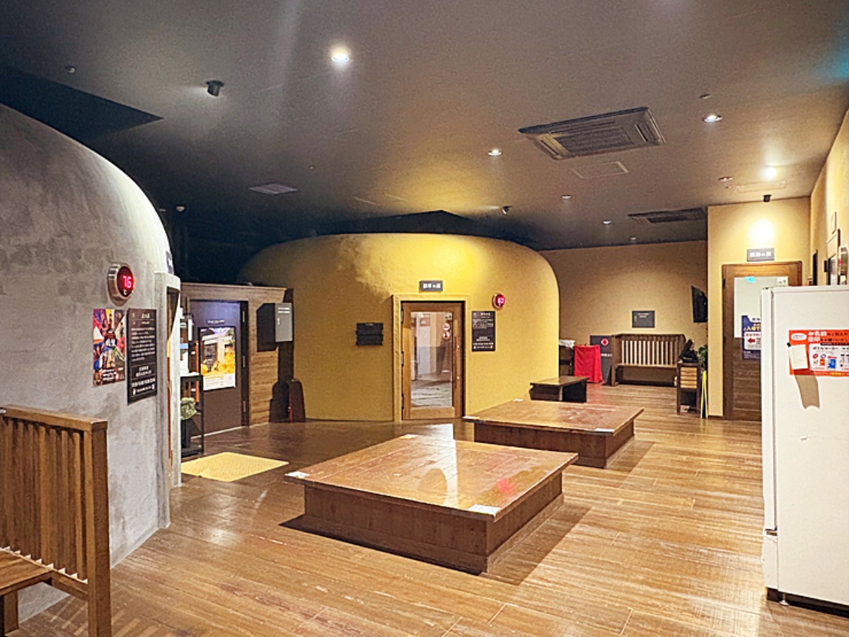 休憩処エリアの奥へ進むと、落ち着いた照明かつプライベート感あるリラックススペースが。ここでくつろぐ人もちらほら。