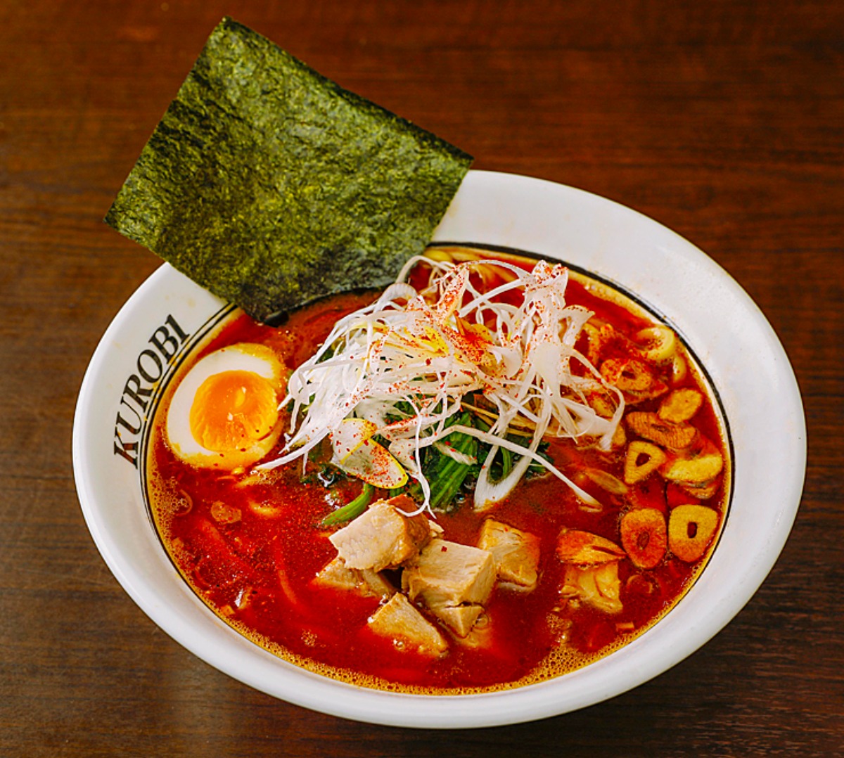 豚骨スープに旨辛ダレをプラス。1〜3辛から選べる。ごろごろチャーシューが食べごたえ満点