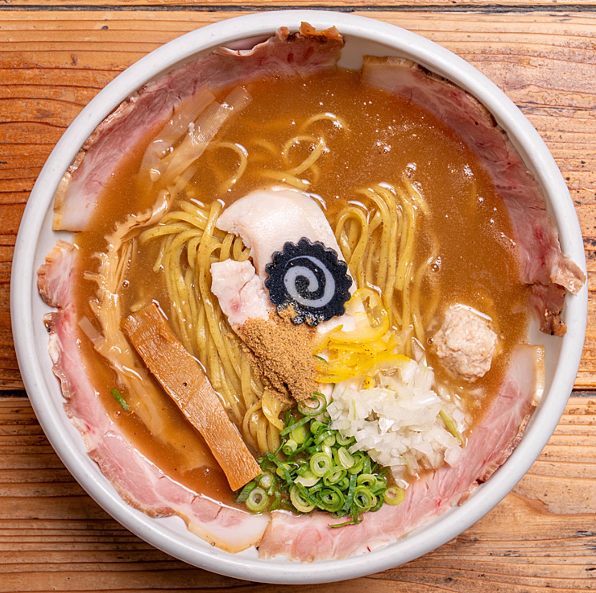 弾力ある自家製極太麺が上品な風味を引き立て、最後までスープと麺の一体感を楽しめる満足感あふれる一杯だ。