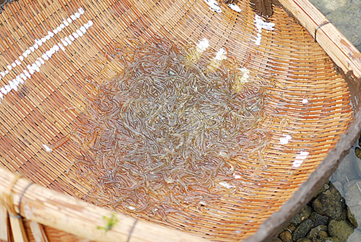一般的なしらうお(白魚)はシラウオ科の魚ですが、宇和島市津島町で「しらうお」と呼ばれているのは「シロウオ」と呼ばれる全長4~9センチほどの透き通った飴色が美しいスズキ目ハゼ科の魚。