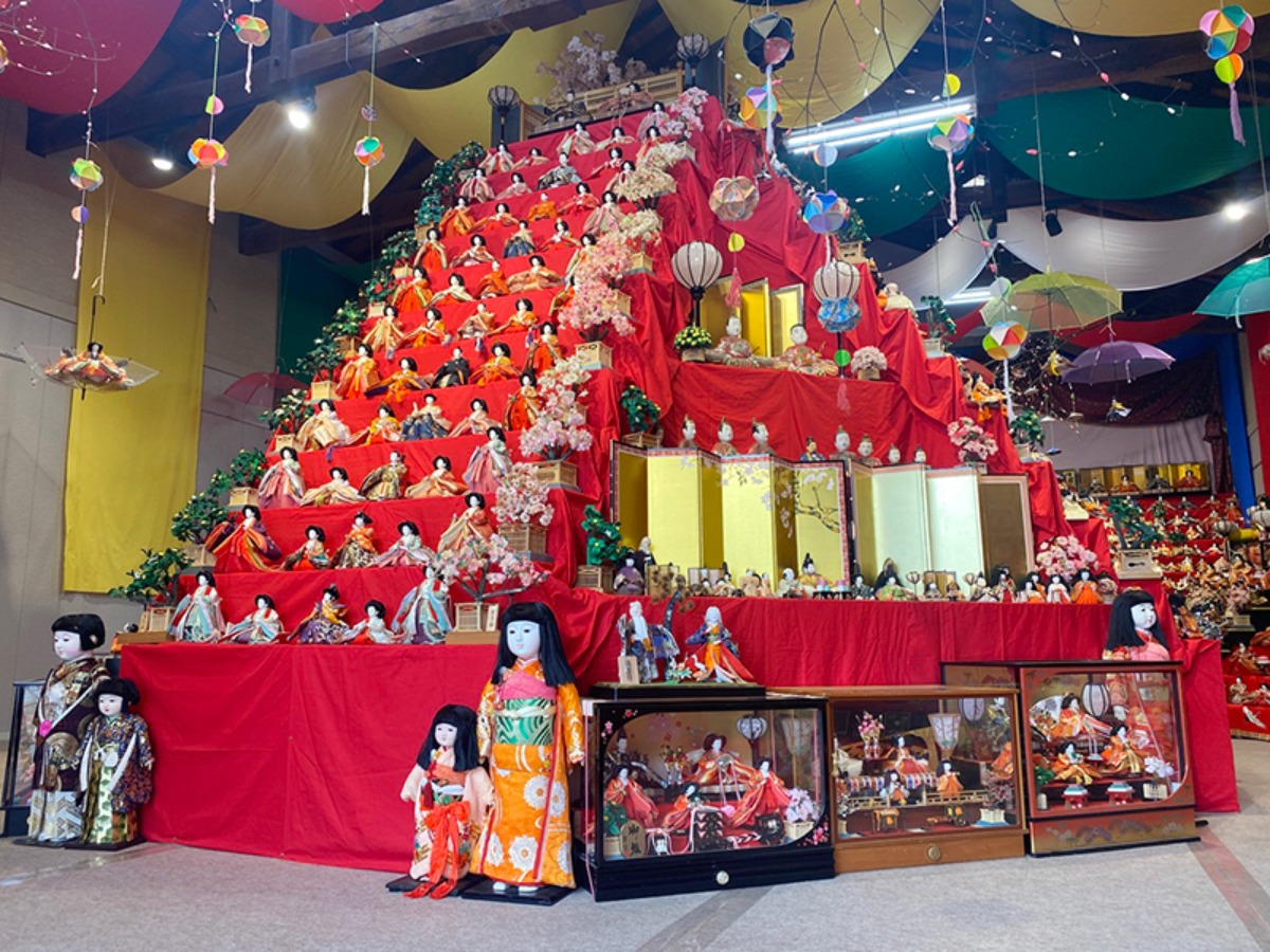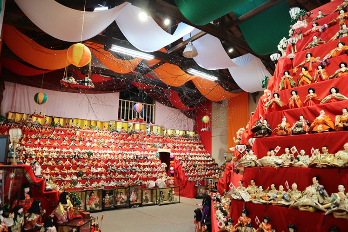 全国各地から寄贈された約1万体ものひな人形が並ぶ光景は圧巻で、春のまち歩きを一層彩り豊かなものにしてくれます。