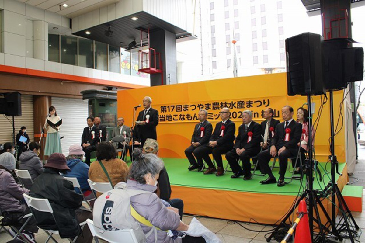 9:20から始まるオープニングセレモニーに先立ち、8:30からは「まつやま農林水産物ブランド産品の試食セット」整理券が配布されます。