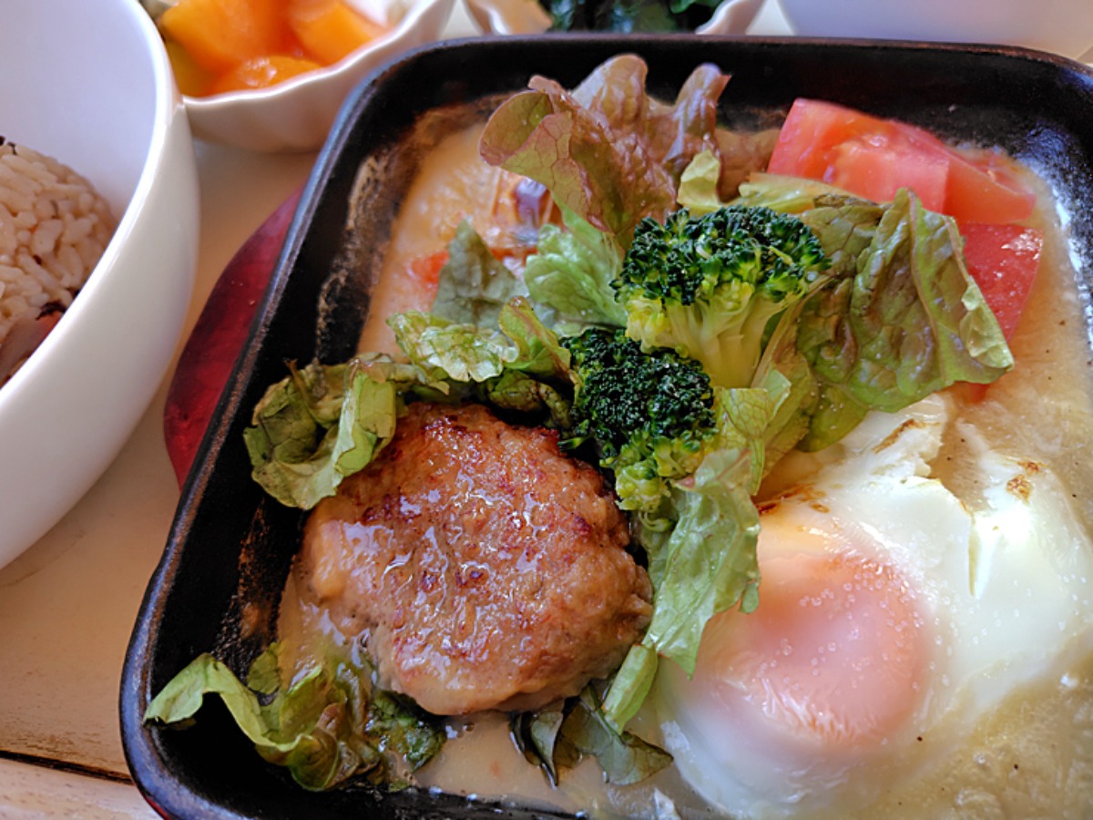 目玉焼とハンバーグも入っていて、かなりボリューミー!
