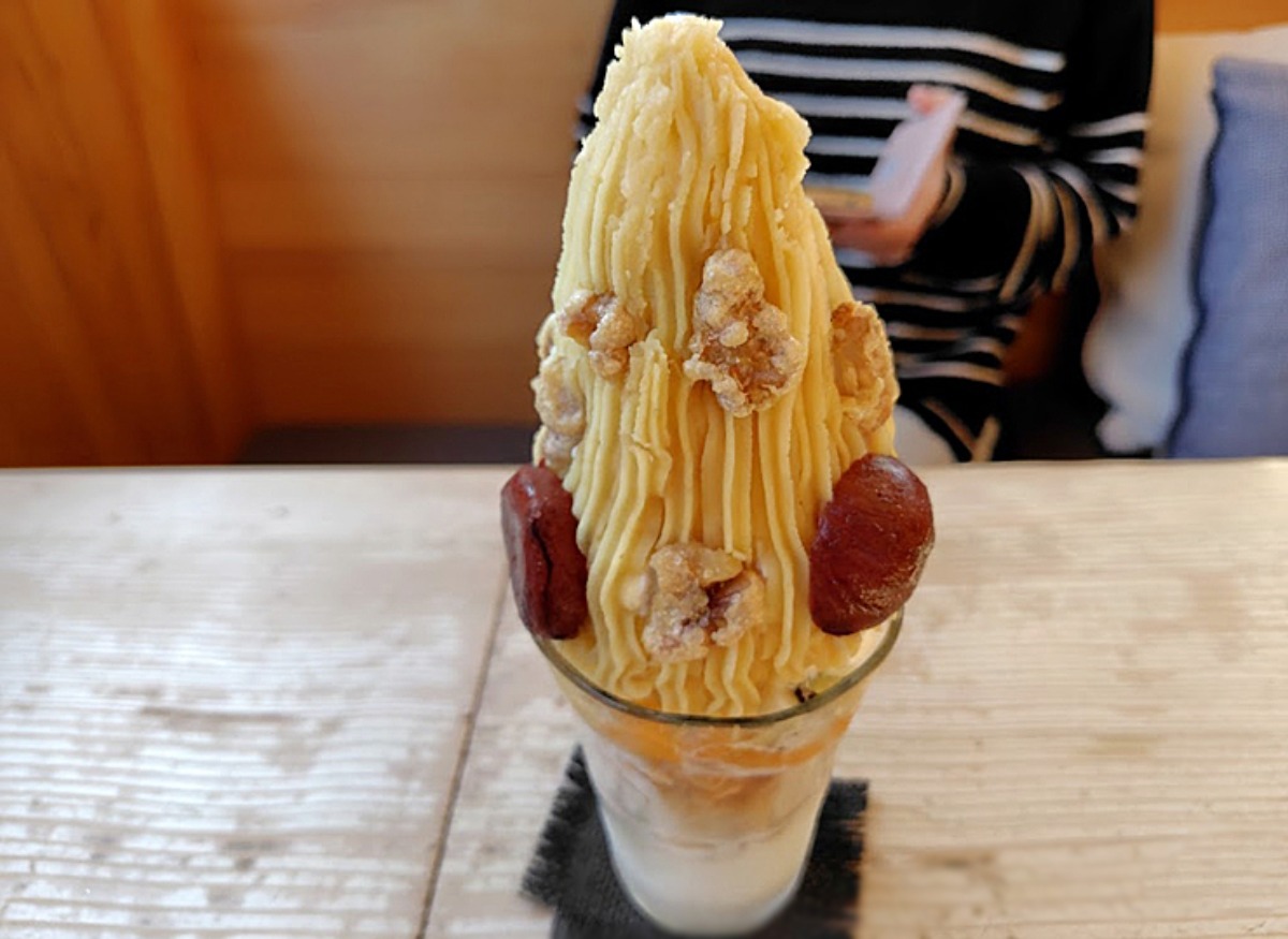 隣の席のお客さんも注文していた、マロンモンブランパフェ。