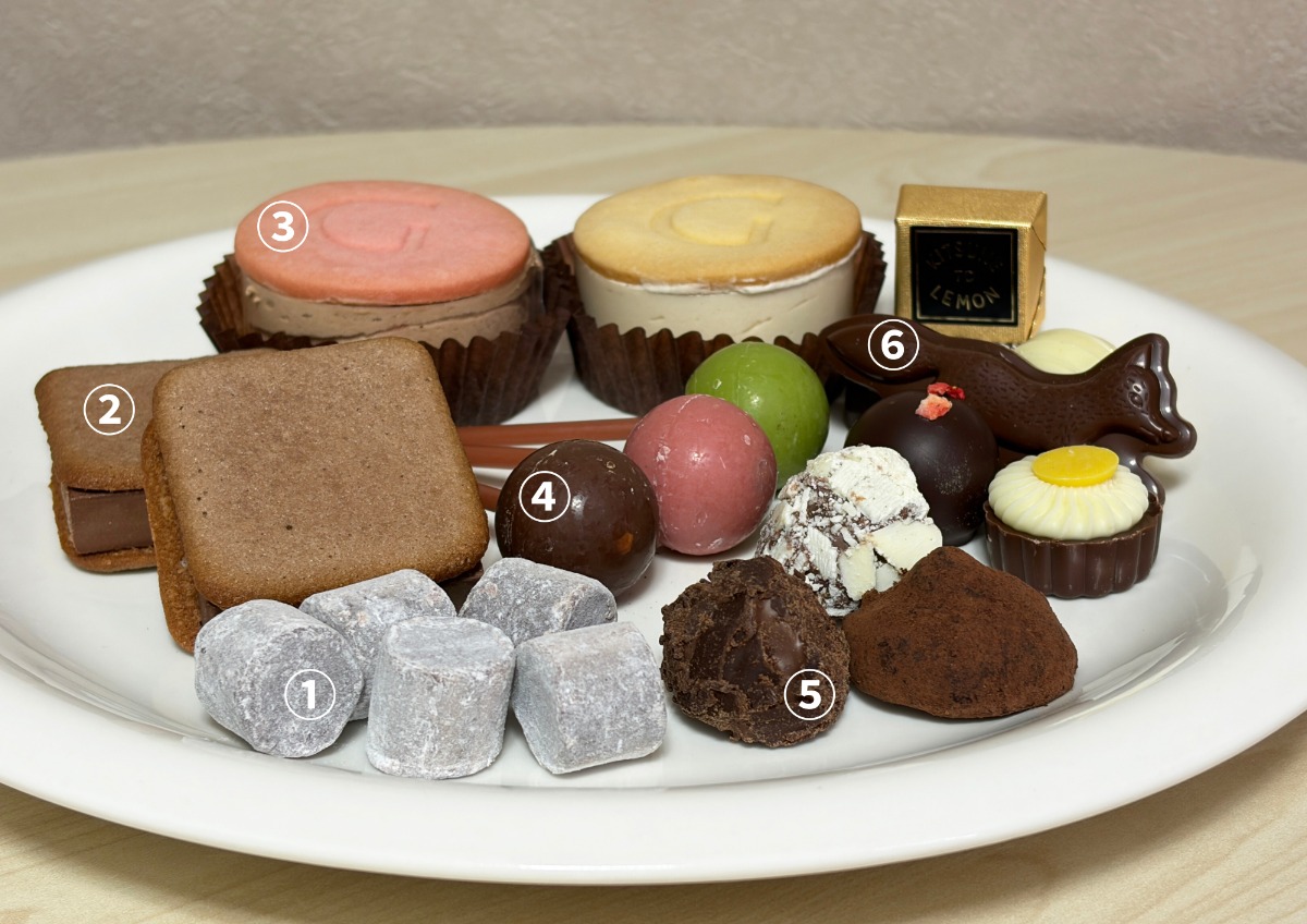 キツネモチーフのチョコレートや可愛らしいデザインのチョコレートがたくさん入っていました。