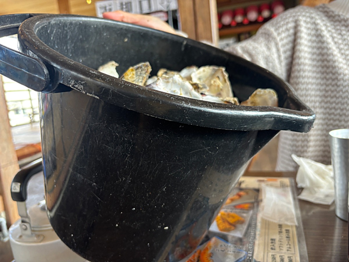 食べ終わる頃には、まぁまぁ深さのあるバケツいっぱいの牡蠣の殻。