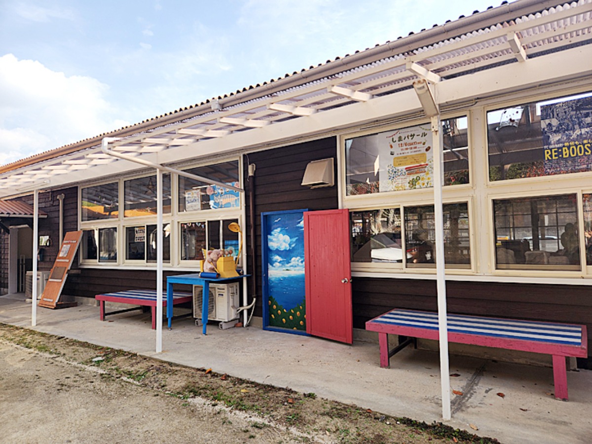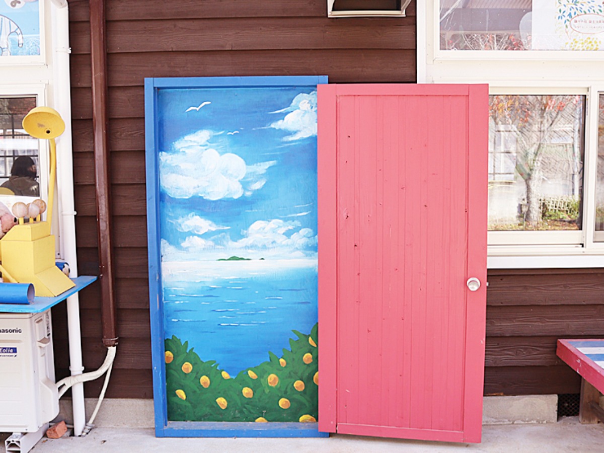 「子育てひろばしましま」は、かつて北浦保育所だった建物をリノベーションして生まれた「鎮守の杜」に存在します。昭和30年代に建築された木造園舎は地域おこし協力隊などのサポートを受け、壁やピザ窯にペンキ塗りを施すなど、アート感溢れるおしゃれな建物として再生。